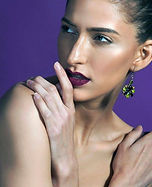 Model is wearing the dangle version. Post earrings in close-up are available.